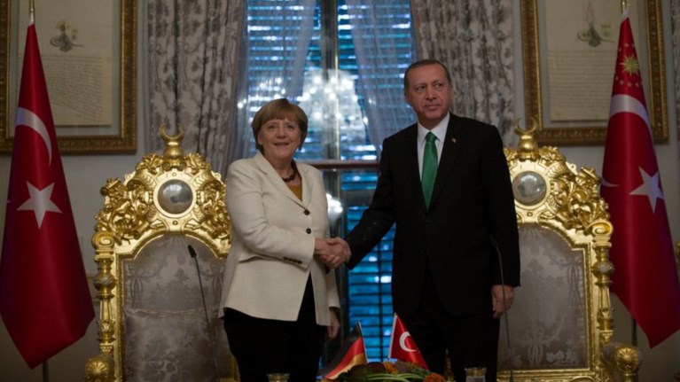 Erdogan und Merkel-Vier photos und ein sprichwort